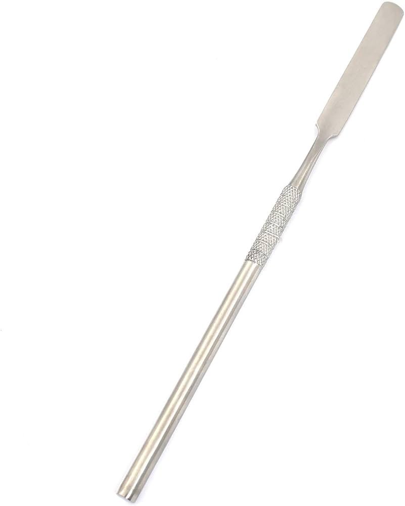 A cement spatula is a dental tool used to mix and apply cement or paste during dental procedures. It features a flat, flexible, stainless steel blade for precise manipulation.
