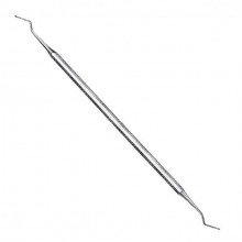A dental excavator is a hand tool used by dentists to remove decayed tooth material and carve cavity preparations for fillings, featuring a sharp, spoon-shaped working end.