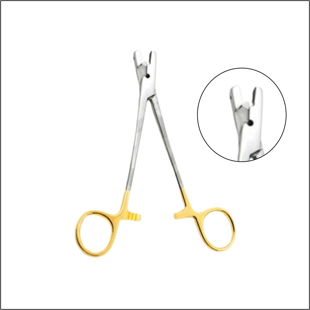 Provides secure grip for surgical needles during orthopedic suturing.